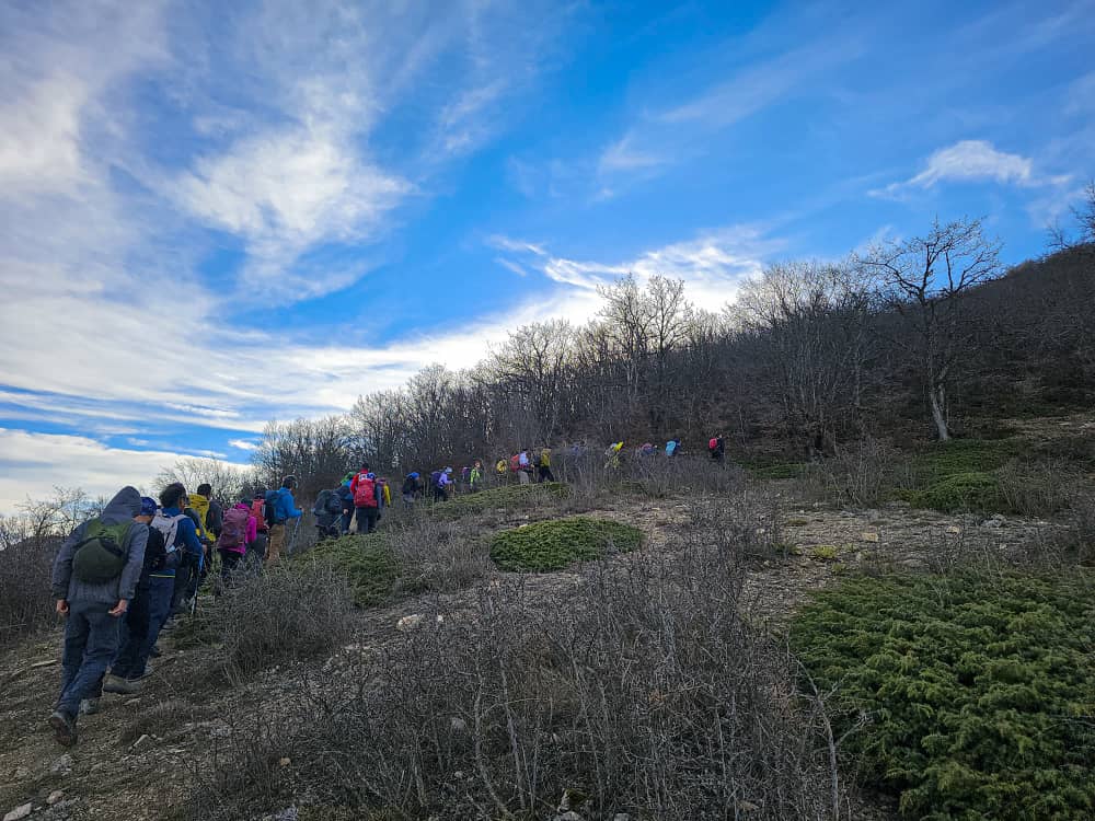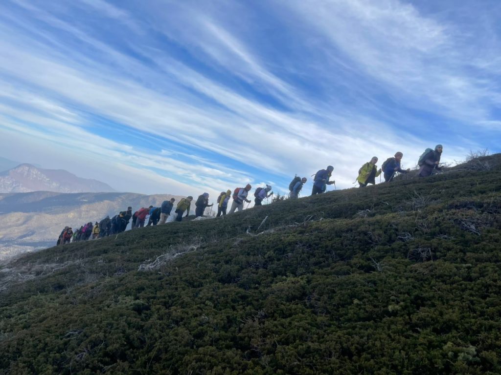 و سپس در مسیر جنوب‌شرقی در راه پاکوب به بالای خط‌راس رسیده و ساعت ۹:۴۵ همگی بر بلندای قلهٔ سرخنی بودیم.