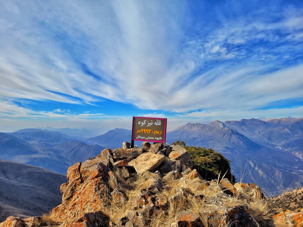 پس از استراحت کوتاه پس از یک فرود به قلهٔ تیزکوه به ارتفاع ۲۹۹۳ متر رسیدیم.